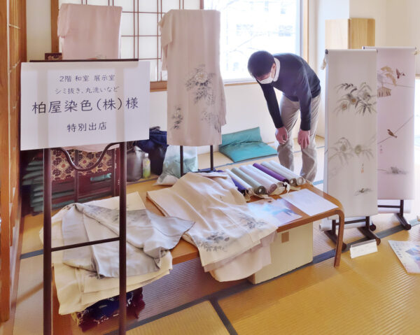 染み抜きや直し、仕立てなど着物のお手入れについての相談を受け付けていました。